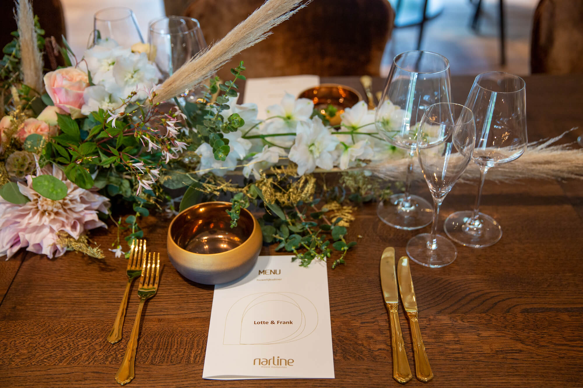 Narline in Zuidwolde is een officiële trouwlocatie in Drenthe. Trouwen kan in de prachtige tuin waar het burgerlijk huwelijk wordt voltrokken. De bruidstaart aansnijden op het terras is het een moment van toosten met elkaar eventueel met de mogelijkheid om de eerste fles zelf sabreren met een champagne sabel. Samen culinair genieten en daarna de voetjes van de vloer. Jullie trouwfeest moet een topfeest worden. Een onvergetelijke dag! Willen jullie weten hoe we dat bij Narline doen?